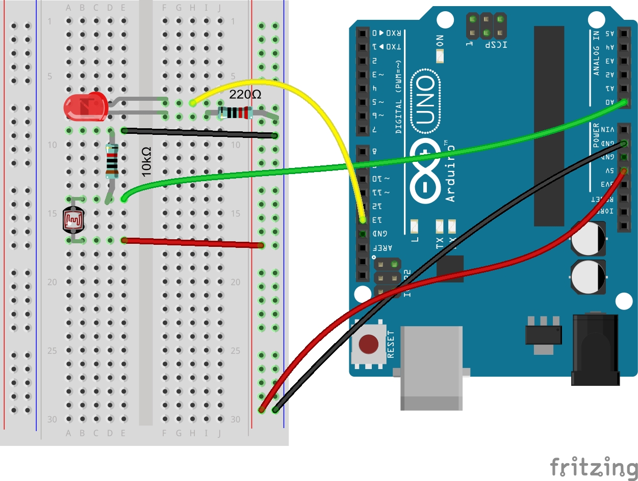 Para este segundo proyecto, lo que haremos será que el sensor de luz controle directamente la intencidad de otro LED, haciendo que brille mucho cuando haya poca luz, o que brille poco o nada cuando haya abundante luz.